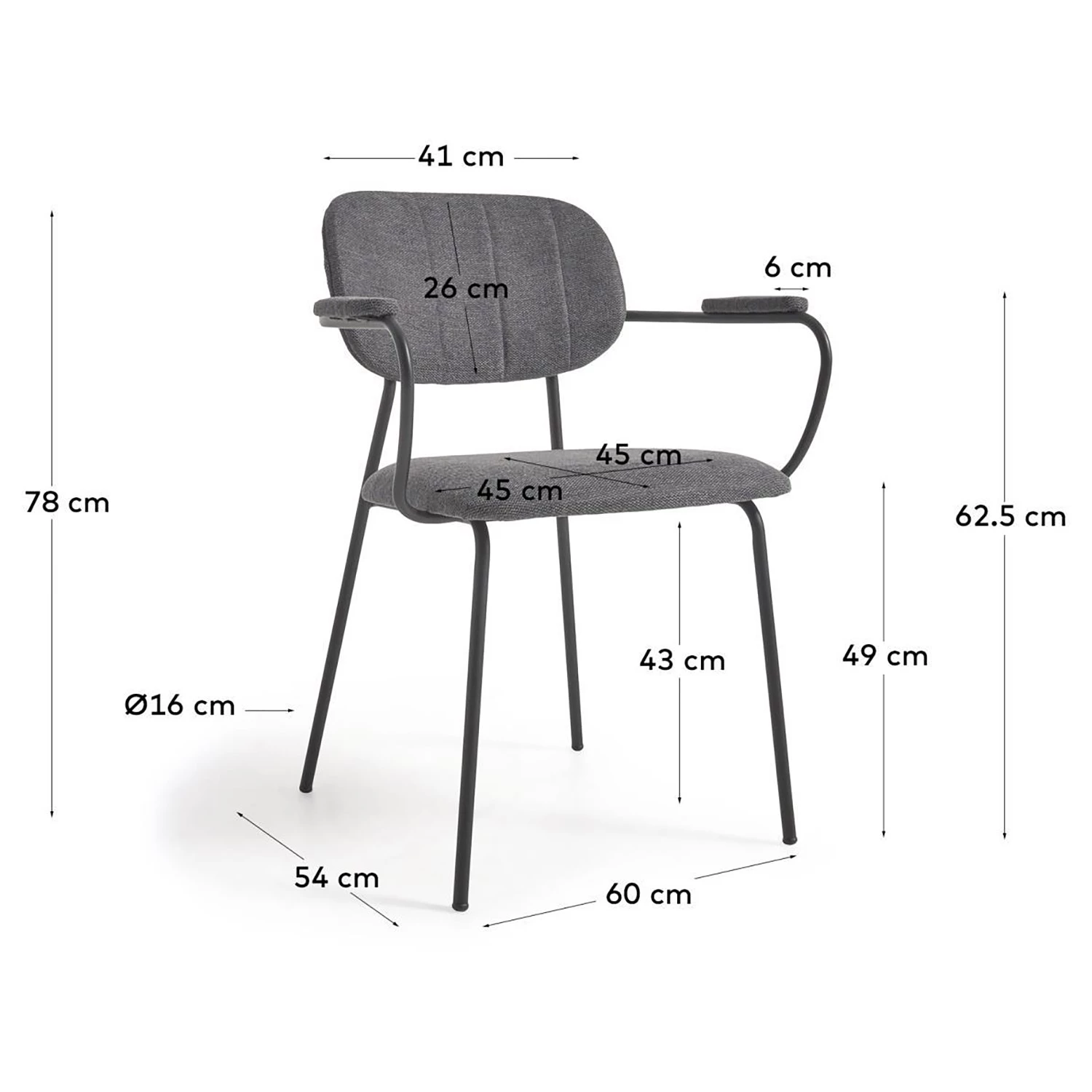 - Hauteur des accoudoirs : 63 cm