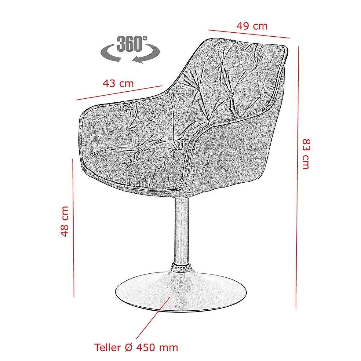 - Hauteur d’assise : 48 cm